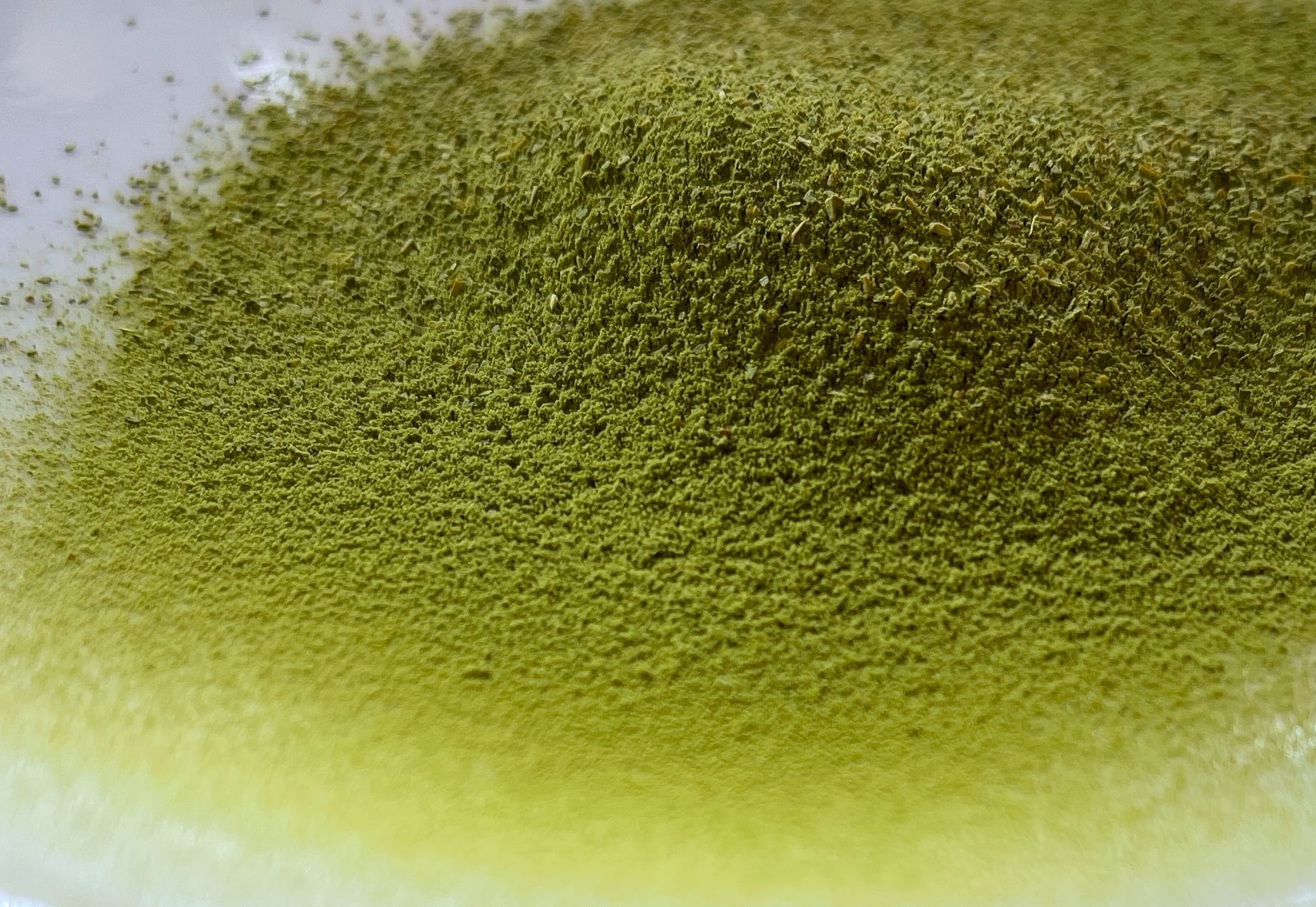 檜の郷のグリーンシナモンは、乾燥作業を時間をかけて丁寧に行っているため、爽やかな風味を損なうことなく、また、色鮮やかな緑色もそのままにパウダー化できています。