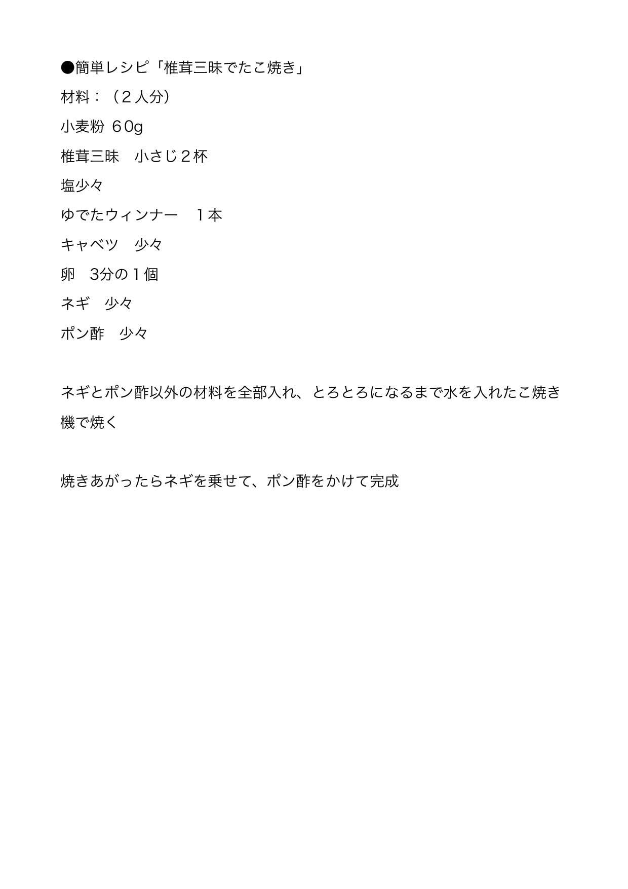 ●簡単レシピ「椎茸三昧でたこ焼き」